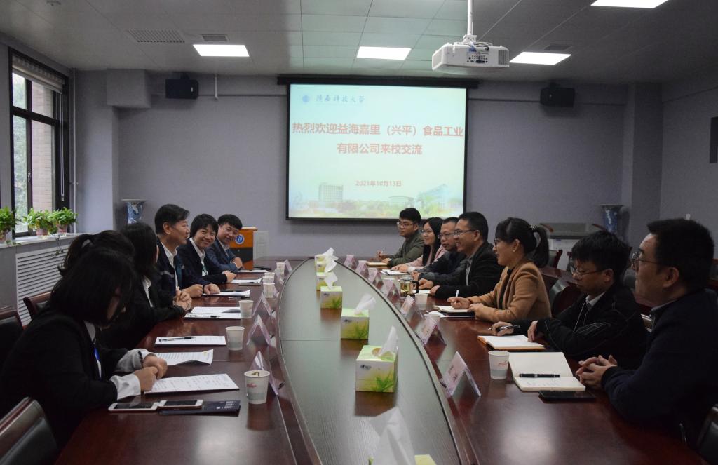 10月13日下午,益海嘉里(興平)食品工業(yè)有限公司總經(jīng)理米杰、益海嘉里金龍魚糧油食品股份有限公司招聘經(jīng)理張詩偲等一行6人來食品學(xué)院開展合作交流。食品學(xué)院黨委書記訾榮祿、副書記孫敏、副院長龔國利、院長助理劉寧以及相關(guān)老師參加合作交流座談會。