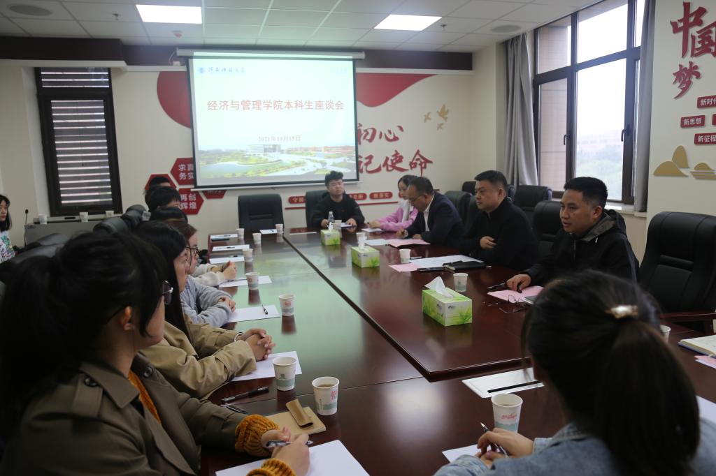 為深入推進(jìn)黨史學(xué)習(xí)教育,全面掌握、解決好學(xué)生學(xué)習(xí)生活中“急難愁盼”的現(xiàn)實問題,做到真解決問題,解決真問題。經(jīng)管學(xué)院在人文樓A415分別于10月15日、18日舉行了本科生和研究生代表座談會。學(xué)院班子成員、研究生秘書、輔導(dǎo)員和學(xué)生代表參加座談會。