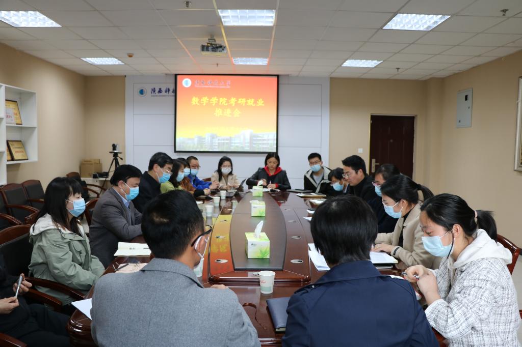 院長助理宋沛匯報(bào)了學(xué)院2022屆畢業(yè)生就業(yè)、升學(xué)情況,詳細(xì)分析當(dāng)前工作的重點(diǎn)難點(diǎn),并結(jié)合《數(shù)學(xué)學(xué)院畢業(yè)生就業(yè)工作實(shí)施方案》和《數(shù)學(xué)學(xué)院關(guān)于考研學(xué)生網(wǎng)格化指導(dǎo)的實(shí)施方案》,對下一階段重點(diǎn)工作作了具體安排。