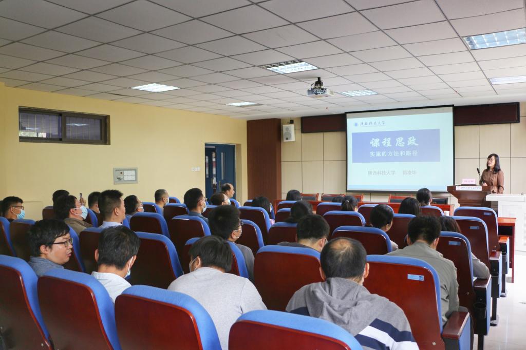 為進一步落實立德樹人根本任務(wù),扎實推進“課程思政”建設(shè),提升本科生培養(yǎng)質(zhì)量,4月29號,教師發(fā)展中心開展“送培訓到學院”主題活動,邀請教師發(fā)展中心“課程思政”講師團成員、我校輕工科學與工程學院郭凌華教授到材料科學與工程學院做課程思政教學經(jīng)驗分享?;顒佑蓪W院院長助理歐陽海波主持。