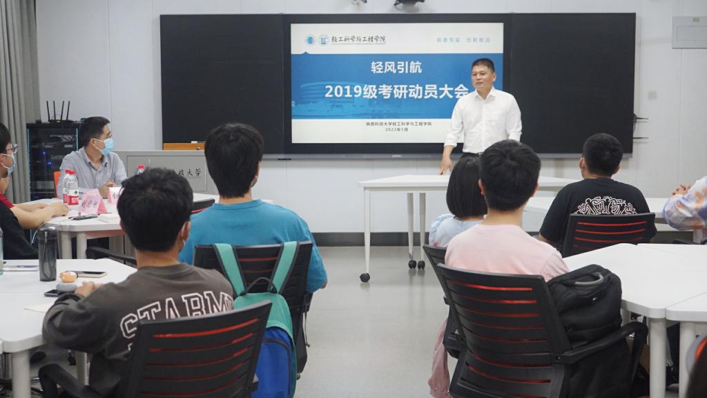 為了幫助同學(xué)們更好了解2022年考研錄取情況和2023年考研的基本形勢,5月18日,輕工科學(xué)與工程學(xué)院在教五舉行“輕風(fēng)引航”——2019級本科生考研宣講會。輕工學(xué)院院長呂斌、學(xué)院黨委副書記張乾隆、副院長劉國棟,2019級輔導(dǎo)員及19級全體學(xué)生參加會議。宣講會由張乾隆主持。