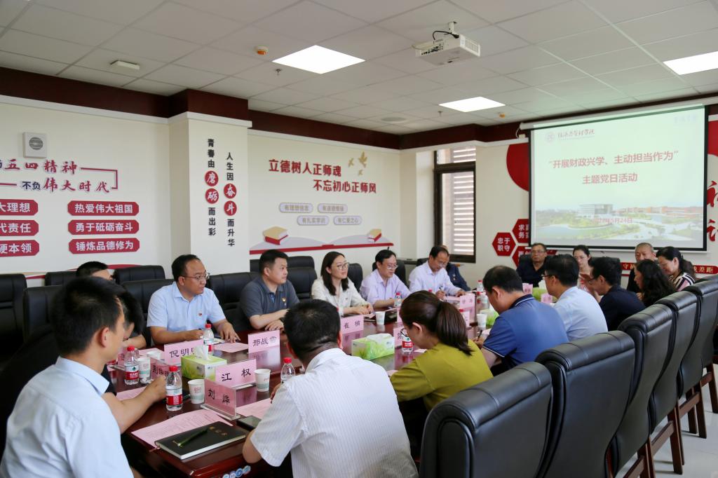 為加強政府部門與高校聯(lián)動機制,5月24日,西安市財政局與我校經(jīng)濟與管理學(xué)院黨委、財務(wù)處黨支部聯(lián)合開展“開展財政興學(xué)、主動擔(dān)當(dāng)作為”主題黨日活動。西安市財政局行政處黨支部、財政風(fēng)險管理處黨支部、績效評價處黨支部、科教文處黨支部、會計處黨支部全體黨員,我校財務(wù)處負責(zé)人、經(jīng)管學(xué)院負責(zé)人及學(xué)院部分教工黨員全程參加本次活動。