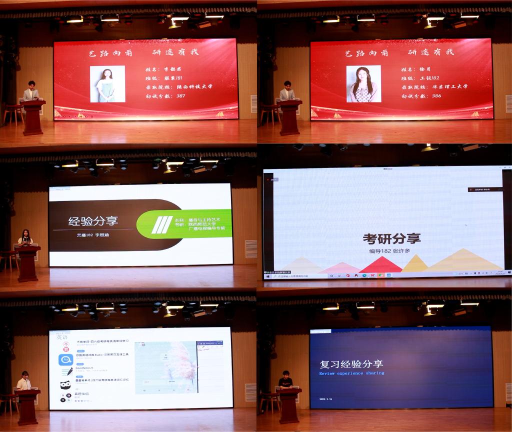 “藝享大講堂”分享會(huì)階段,李韶君、徐月、董清華、魏一葦、沈思迪、張?jiān)S多等7名同學(xué)作為優(yōu)秀考研錄取代表分別為大家做了考研經(jīng)驗(yàn)分享。