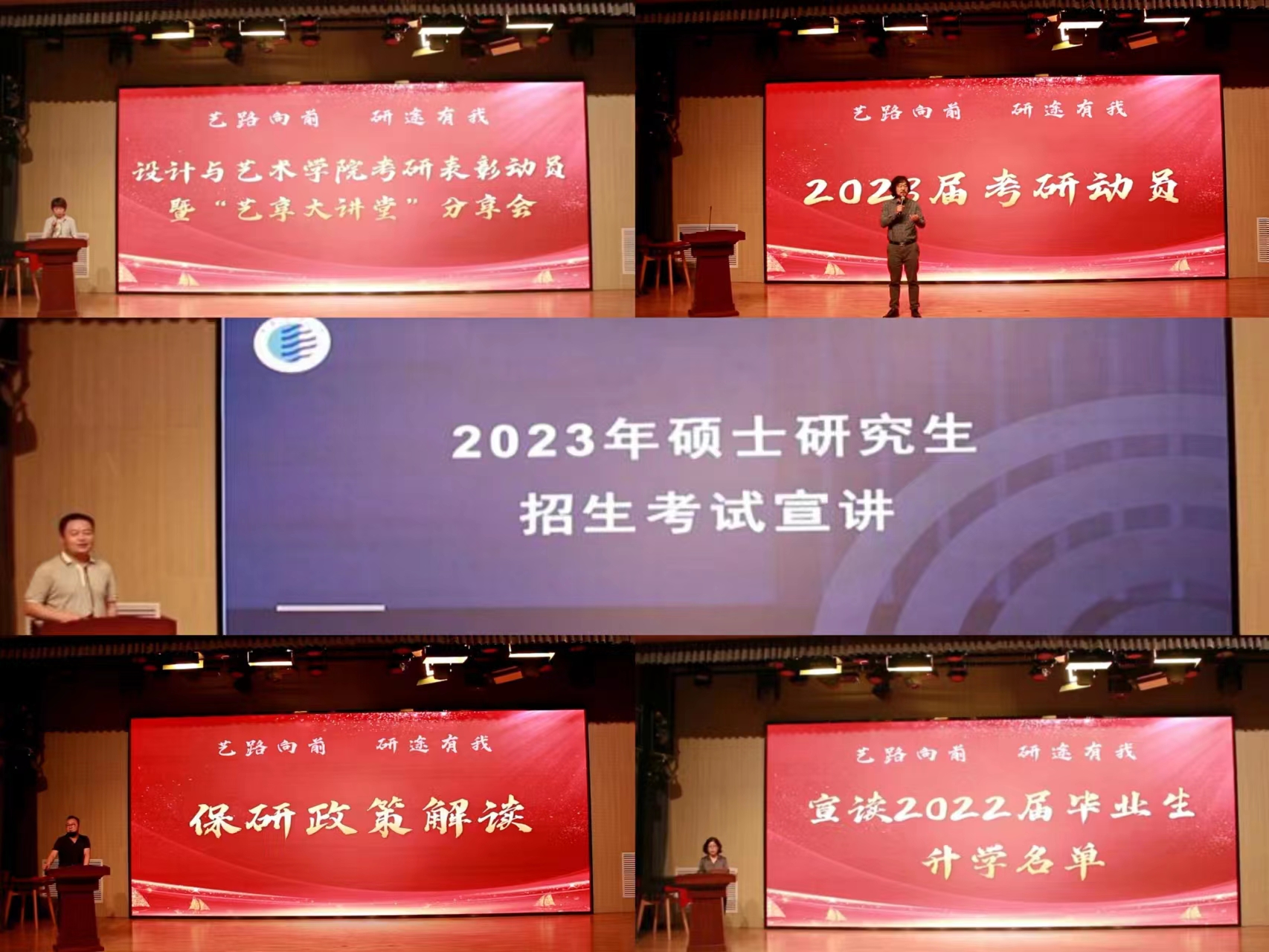 5月27日,設(shè)計(jì)與藝術(shù)學(xué)院在人文樓小劇場(chǎng)召開“藝路向前 研途有我——考研表彰動(dòng)員暨“藝享大講堂”分享會(huì)。研究生招生辦主任李成龍、設(shè)藝學(xué)院班子成員、專業(yè)教研室老師、全體輔導(dǎo)員、2018級(jí)考研錄取學(xué)生及2019級(jí)學(xué)生代表參加現(xiàn)場(chǎng)會(huì)議,700余名本科生通過(guò)微信直播號(hào)與騰訊會(huì)議平臺(tái)參會(huì)。