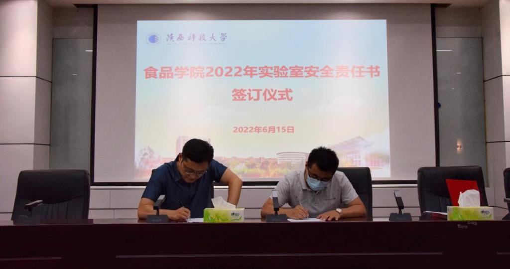 隨后,學院舉行了2022年度實驗室安全責任書簽訂儀式,院長助理劉寧宣讀《食品學院實驗室安全責任書》具體內(nèi)容。院長李國梁代表學院與相關研究室、本科教學實驗室安全責任人代表簽訂了安全責任書。
