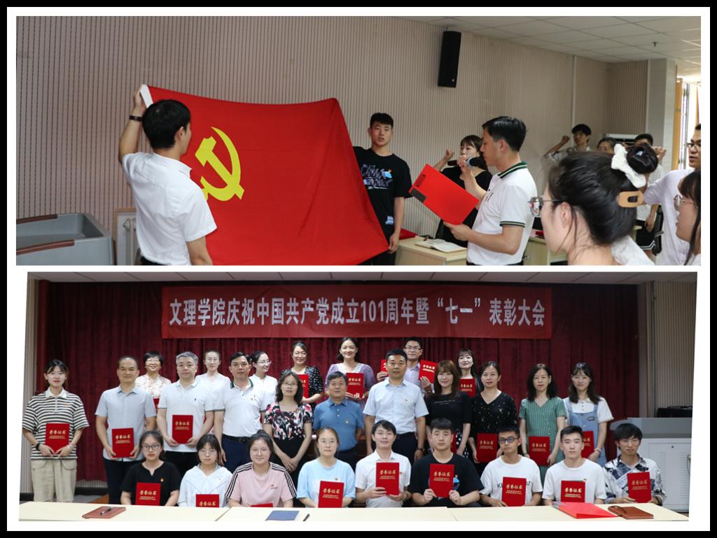 “我志愿加入中國(guó)共產(chǎn)黨,擁護(hù)黨的綱領(lǐng),遵守黨的章程……”堅(jiān)定的入黨宣誓聲在理科樓回響著,這是文理學(xué)院新發(fā)展預(yù)備黨員與受表彰優(yōu)秀黨員正在莊嚴(yán)宣誓、重溫入黨誓詞,一句句鏗鏘有力的誓詞讓每一位黨員信仰更堅(jiān)定。6月29日下午,文理學(xué)院舉行慶祝中國(guó)共產(chǎn)黨成立101周年暨“七一”表彰大會(huì),會(huì)上,學(xué)院黨委對(duì)2個(gè)“先進(jìn)黨支部”、12名“優(yōu)秀共產(chǎn)黨員”、10名“‘學(xué)習(xí)強(qiáng)國(guó)’學(xué)習(xí)先進(jìn)個(gè)人”和11名“黨員抗疫先進(jìn)個(gè)人”分別進(jìn)行了表彰。先進(jìn)黨支部書(shū)記代表邵鵬在會(huì)上分享了基層黨支部工作經(jīng)驗(yàn)和一年來(lái)黨支部建設(shè)取得的成果,優(yōu)秀共產(chǎn)黨員教工代表劉芳分享了自己作為一名高校教師黨員的成長(zhǎng)經(jīng)歷,優(yōu)秀共產(chǎn)黨員學(xué)生代表李治國(guó)分享了自己在黨組織的關(guān)懷與培育下堅(jiān)定信念、積極進(jìn)取的學(xué)習(xí)經(jīng)歷,在交流與分享中,老黨員們積蓄了力量,新黨員們看到了榜樣。最后,學(xué)院黨委書(shū)記陳源梅、院長(zhǎng)劉建科為上半年新發(fā)展預(yù)備黨員佩戴黨員徽章。