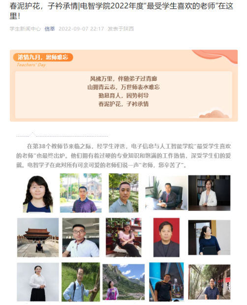 為進(jìn)一步增強(qiáng)教師職業(yè)榮譽(yù)感、責(zé)任感和使命感,營(yíng)造尊師重教的良好風(fēng)尚,團(tuán)結(jié)凝聚廣大教師,在第38個(gè)教師節(jié)來(lái)臨之際,電子信息與人工智能學(xué)院開(kāi)展慶祝教師節(jié)系列活動(dòng)。