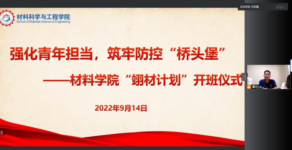 據(jù)悉,材料學院“翊材計劃”以黨團班學生骨干為培訓授課對象,提升學生骨干整體素養(yǎng),將從思想引領(lǐng)、經(jīng)驗傳授、團隊熔煉等方面,開展為期兩個月的培訓。