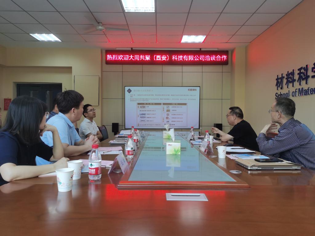 為進(jìn)一步促進(jìn)產(chǎn)學(xué)研開放合作,近日,大同共聚(西安)科技有限公司董事長(zhǎng)聶新宇、總經(jīng)理李陶琦來(lái)我校材料學(xué)院(文物保護(hù)科學(xué)與技術(shù)學(xué)院)洽談科研合作。材料學(xué)院院長(zhǎng)朱建鋒,副院長(zhǎng)劉輝、王卓,劉曉旭教授及相關(guān)科研領(lǐng)域教師參加了簽約儀式,會(huì)議由劉輝主持。