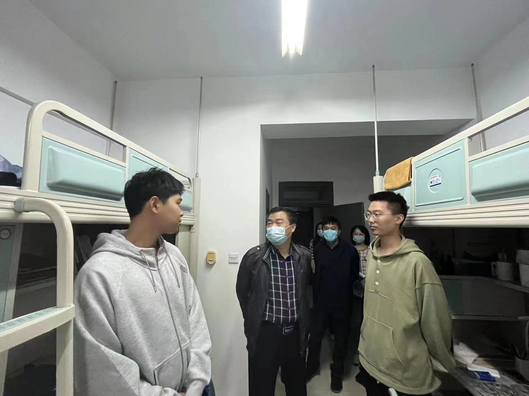院黨委書記賀濤代表學(xué)院向全體同學(xué)送上節(jié)日祝福,詳細(xì)了解同學(xué)們假期的學(xué)習(xí)和生活情況,特別叮囑同學(xué)們疫情期間做好個(gè)人防護(hù),注意添衣保暖。在新生宿舍,他鼓勵(lì)同學(xué)們要盡快適應(yīng)大學(xué)的新生活,養(yǎng)成良好的學(xué)習(xí)和生活習(xí)慣,只爭朝夕,不負(fù)韶華。