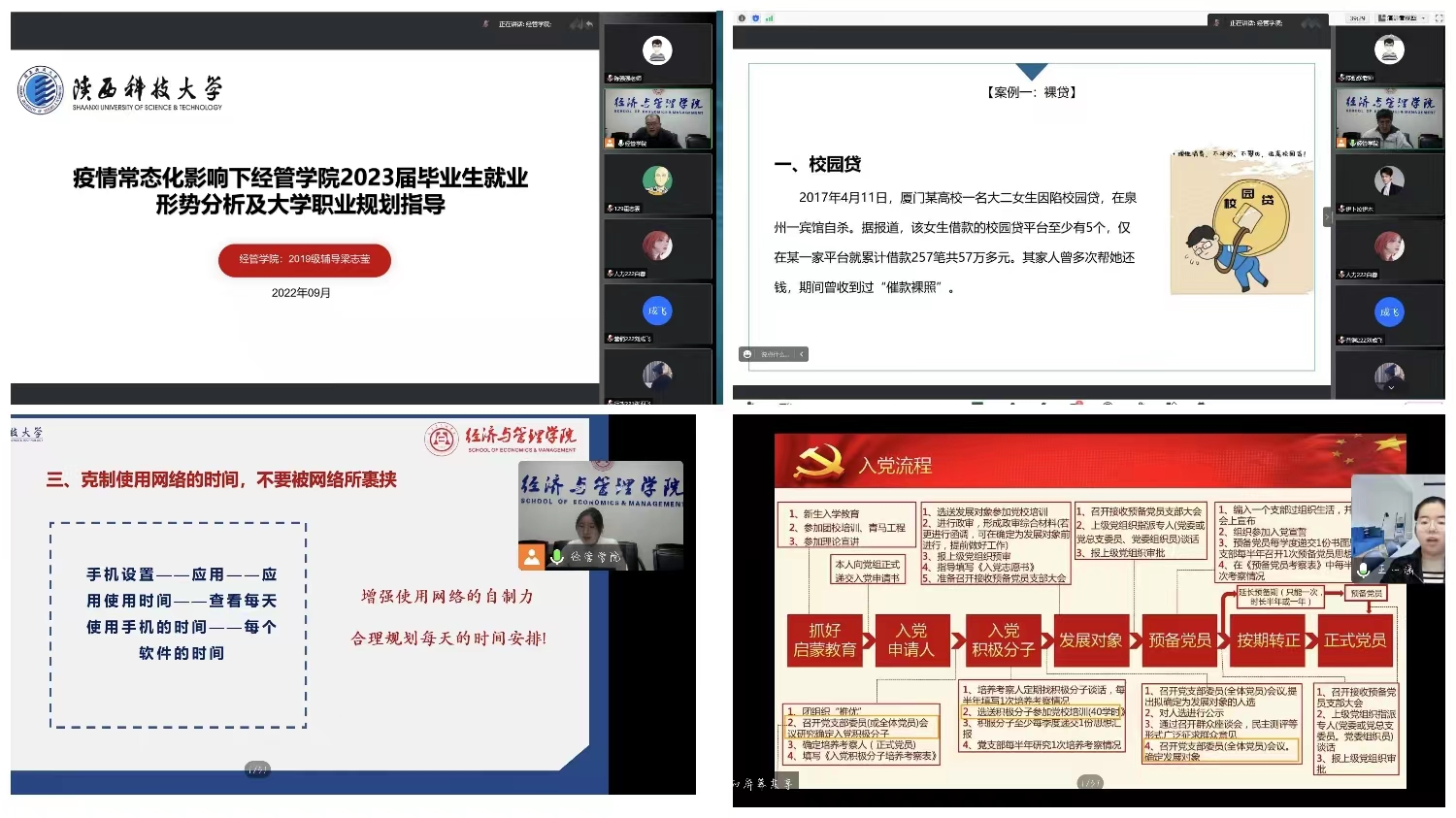為幫助2022級(jí)本科新生盡快適應(yīng)大學(xué)階段的學(xué)習(xí)和生活,進(jìn)一步增強(qiáng)對(duì)學(xué)校、學(xué)院的集體歸屬感和學(xué)科專業(yè)的認(rèn)同感,激發(fā)勵(lì)志成才正能量,經(jīng)濟(jì)與管理學(xué)院于10月24日至28日,分專業(yè)采用線上方式組織開展了2022級(jí)本科生線上入學(xué)教育。