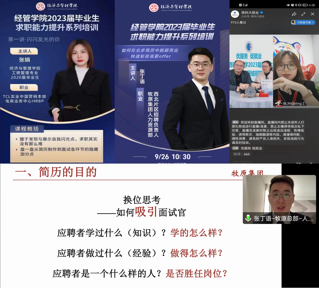 用心式就業(yè)資源開拓,確保崗位持續(xù)供應(yīng)。為克服疫情影響下企業(yè)無法進(jìn)校招聘的不利影響,學(xué)院班子成員、專業(yè)教師和畢業(yè)班輔導(dǎo)員主動聯(lián)系邀請了金田銅業(yè)、陜西電子信息集團(tuán)、銳捷網(wǎng)絡(luò)、創(chuàng)維數(shù)字、比亞迪、奧克斯集團(tuán)、杭州老板電器、西安經(jīng)發(fā)物業(yè)等10余家企業(yè)通過線上宣講、個體推薦等方式進(jìn)行招聘,提供崗位100余個,目前簽約12人。面對學(xué)生對“云招聘”新就業(yè)形態(tài)不適應(yīng)的問題,輔導(dǎo)員主動化身“主播”,聯(lián)系了牧原集團(tuán)、TCL集團(tuán)、安踏斐樂等三家企業(yè)參加就業(yè)指導(dǎo)中心主辦的優(yōu)服務(wù)、促就業(yè)網(wǎng)絡(luò)招聘活動,參加學(xué)生1300余人。此外,學(xué)院組織了教師、輔導(dǎo)員、學(xué)生黨員、班委等為主要力量的就業(yè)信息搜集小分隊,開展立體式招聘信息推送,目前累計提供200余條就業(yè)信息。