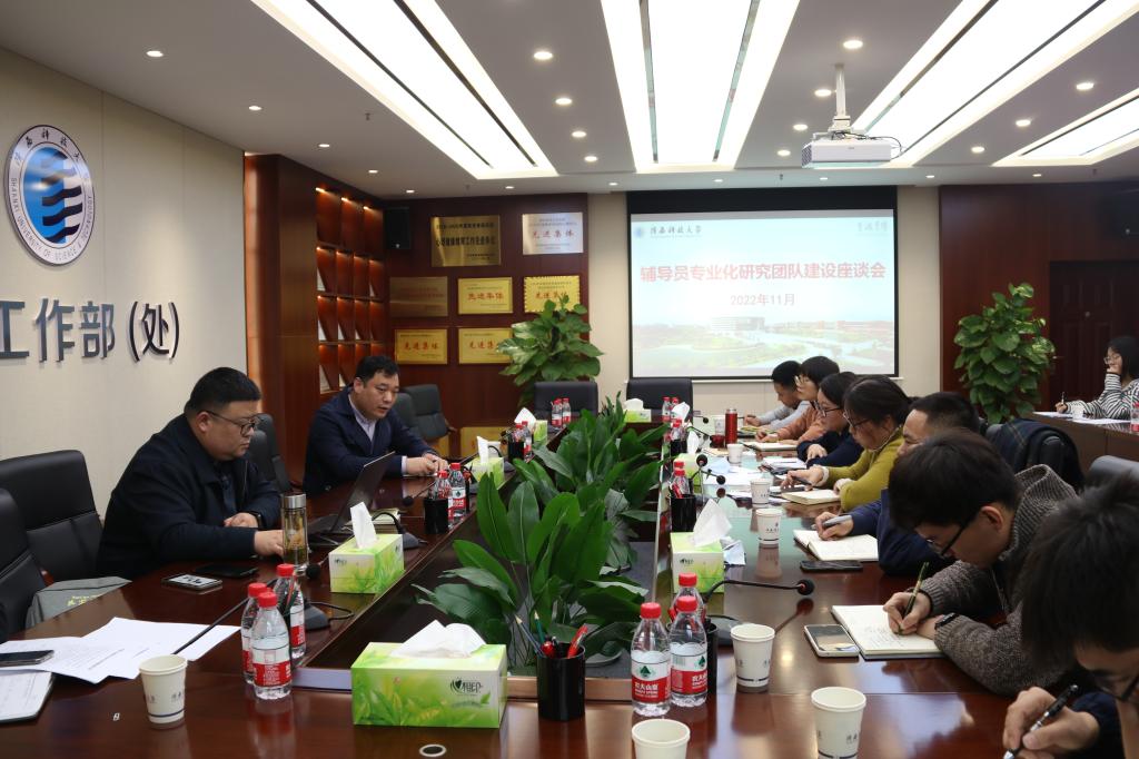 為深入貫徹落實學校輔導員隊伍專業(yè)化職業(yè)化發(fā)展座談會精神,了解各輔導員專業(yè)化研究團隊工作開展情況,破解發(fā)展難題,推動團隊良性發(fā)展,學工系統(tǒng)近期召開了輔導員專業(yè)化研究團隊建設(shè)座談會。學工部、網(wǎng)絡(luò)思想政治工作中心、校團委負責人,各研究團隊負責人參加會議,會議由學工部部長張凱凱主持。