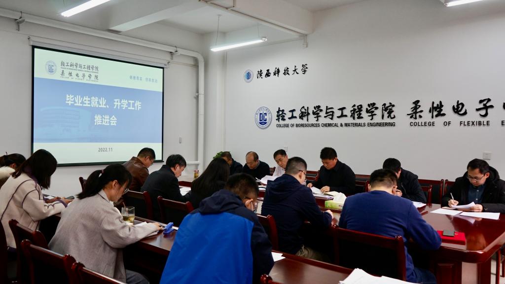 11月23日,輕工科學(xué)與工程學(xué)院(柔性電子學(xué)院)在1B-218會(huì)議室召開(kāi)2023屆畢業(yè)生就業(yè)工作推進(jìn)會(huì),對(duì)畢業(yè)生就業(yè)工作再動(dòng)員、再部署、再推進(jìn)。學(xué)院班子成員、各系主任和畢業(yè)班輔導(dǎo)員參加會(huì)議。會(huì)議由學(xué)院黨委副書(shū)記張乾隆主持。