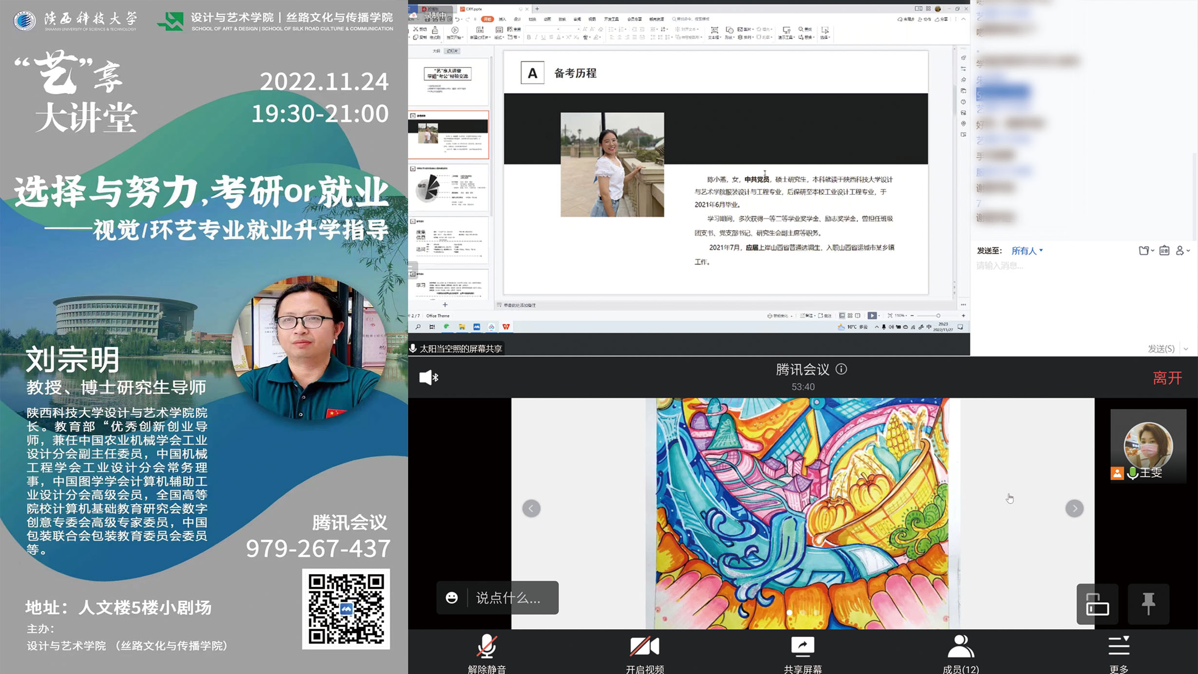 推進(jìn)就業(yè)升學(xué)服務(wù)“保障線”。開設(shè)“藝享大講堂”,幫助畢業(yè)生了解適應(yīng)空中宣講、在線筆試等新形式,引導(dǎo)學(xué)生客觀理性認(rèn)識(shí)就業(yè)形勢(shì),多角度激勵(lì)學(xué)生科學(xué)規(guī)劃發(fā)展方向。邀請(qǐng)學(xué)院院長(zhǎng)劉宗明作“選擇與努力,考研or就業(yè)”的專題講座,幫助學(xué)生厘清發(fā)展方向,做好學(xué)業(yè)規(guī)劃,科學(xué)精準(zhǔn)定位;青年教師輔導(dǎo)員王雯雯舉辦手繪沙龍,發(fā)揮專業(yè)學(xué)習(xí)指導(dǎo)優(yōu)勢(shì),與輔導(dǎo)員共同做好學(xué)生學(xué)業(yè)指導(dǎo);邀請(qǐng)校友陳小燕、朱愷麗分享基層就業(yè)經(jīng)驗(yàn);邀請(qǐng)文都教育考研名師做“英語二作文”考前專場(chǎng)解析。承辦“科大職講堂”,邀請(qǐng)智聯(lián)招聘金牌講師講授畢業(yè)求職面試與簡(jiǎn)歷指導(dǎo)。