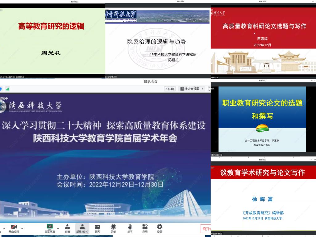 為了進(jìn)一步擴(kuò)大對(duì)外開(kāi)放,促進(jìn)學(xué)術(shù)交流,落實(shí)立德樹(shù)人根本任務(wù),提高人才培養(yǎng)質(zhì)量,12月29日至30日,教育學(xué)院召開(kāi)了首屆學(xué)術(shù)年會(huì)。年會(huì)分為開(kāi)幕式、專(zhuān)家主旨報(bào)告、教師專(zhuān)題報(bào)告、研究生學(xué)術(shù)報(bào)告等四個(gè)環(huán)節(jié)。年會(huì)采用線上騰訊會(huì)議形式進(jìn)行,教育學(xué)院300余名師生參加了本次年會(huì)。