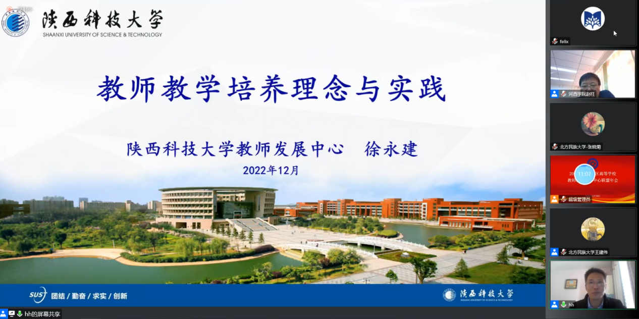 為進一步加強疫情新常態(tài)下高校教師教育信息化應用能力,幫助教師做好線上教學和線下課堂有機融合,推進課堂革命,提升教學質(zhì)量和學生學習實效,促進教師專業(yè)發(fā)展,12月30日,我校參加2022年西北地區(qū)高等學校教師教學發(fā)展中心聯(lián)盟年會并在年會上作主題發(fā)言。