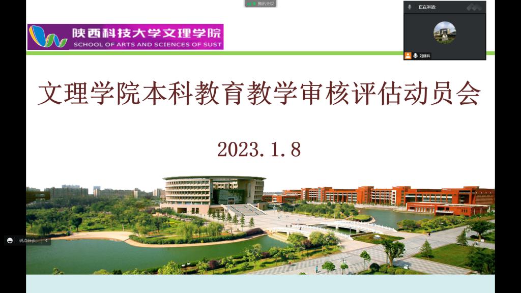 1月8日下午,文理學院召開本科教育教學審核評估工作動員大會,會議采用線上線下同步方式進行。院領(lǐng)導(dǎo)班子成員,各系、教研室正副主任、辦公室全體人員線下參會,其余教師線上參會,會議由文理學院院長劉建科主持。