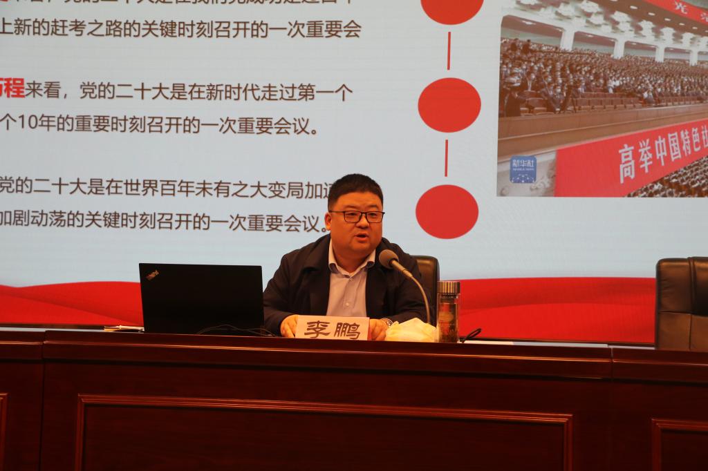 報告會上,李鵬以“深入學(xué)習(xí)貫徹黨的二十大精神”為主題,結(jié)合我校學(xué)生工作實際,從“黨的二十大召開的基本情況”“深入學(xué)習(xí)掌握黨的二十大報告中的理論重點(diǎn)”“學(xué)思踐悟、團(tuán)結(jié)奮斗,為推進(jìn)學(xué)生工作高質(zhì)量發(fā)展貢獻(xiàn)力量”三個方面,對黨的二十大精神進(jìn)行了全面、系統(tǒng)、深入的解讀輔導(dǎo),重點(diǎn)就輔導(dǎo)員如何提升理論學(xué)習(xí)興趣、培養(yǎng)學(xué)習(xí)閱讀習(xí)慣、做好實踐育人等分享了個人經(jīng)驗心得,對如何以黨的二十大精神指導(dǎo)學(xué)生工作更好開展提出了工作思路和實操舉措。報告在全體學(xué)生工作干部中引發(fā)熱烈反響。