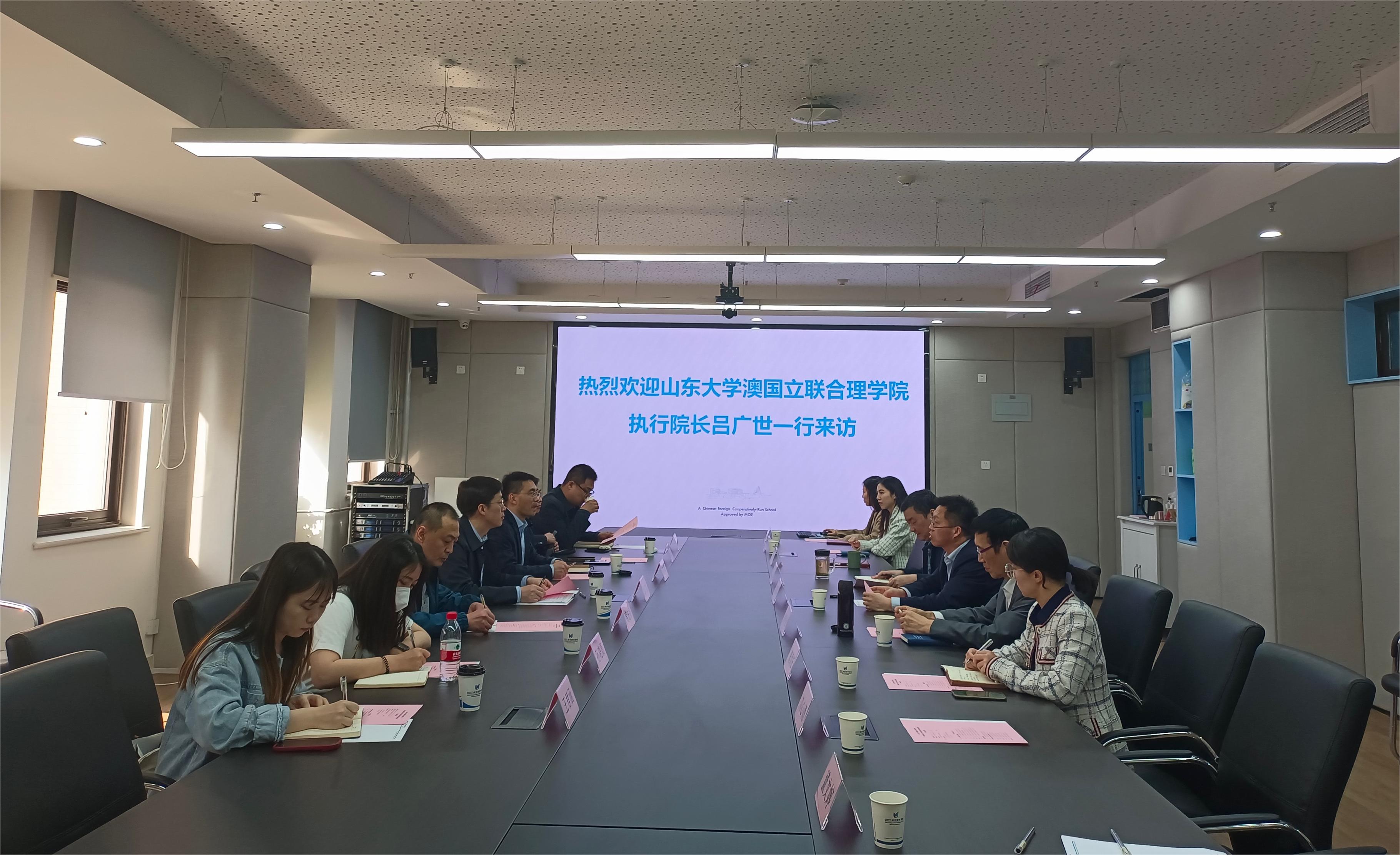 薛朝華首先對呂廣世一行的到訪表示歡迎,并從學(xué)院概況、辦學(xué)條件、建章立制及未來發(fā)展等四個方面介紹了阿爾斯特學(xué)院的建設(shè)現(xiàn)狀和中、長期規(guī)劃。呂廣世簡要介紹了山東大學(xué)澳國立聯(lián)合理學(xué)院的運(yùn)行管理情況。隨后,雙方就中外合作辦學(xué)的日常管理、制度建設(shè)及教育部中外合作辦學(xué)前期準(zhǔn)備工作等方面進(jìn)行了充分交流研討。