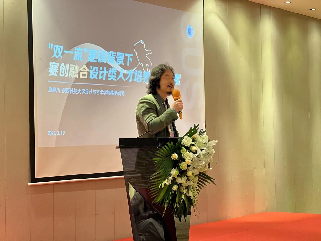 會上,詹秦川教授做了題為《“雙一流”建設背景下賽創(chuàng)融合設計類人才培養(yǎng)模式探索》的主題報告。詹秦川教授以“賽創(chuàng)融合”為主題,以雙一流總目標和具體任務為切入點,重點介紹了我校設計學“3+4+5+5”創(chuàng)新創(chuàng)業(yè)培養(yǎng)體系的構建路徑與實踐探索,并與參會嘉賓分享了“名窯重生”“畫個小鎮(zhèn)”“新天”等多個集群雙創(chuàng)的成功案例,彰顯了我校設計學科在政產學研用多元融合的背景下,深耕文化傳承、聚力鄉(xiāng)村振興、賡續(xù)紅色基因,發(fā)揮優(yōu)勢、突出特色,取得了一系列豐碩成果,持續(xù)推動設計學學科高質量發(fā)展。