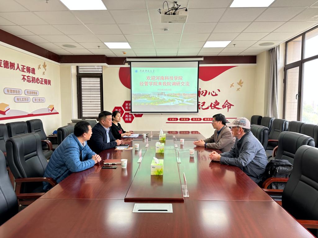 3月22日,河南科技學(xué)院經(jīng)濟學(xué)院黨委書記何二毛、副院長郎群秀蒞臨我校經(jīng)濟與管理學(xué)院調(diào)研交流。經(jīng)管學(xué)院黨委書記崔楠、副院長薛儉、教師石乘齊與來訪嘉賓進(jìn)行座談交流。