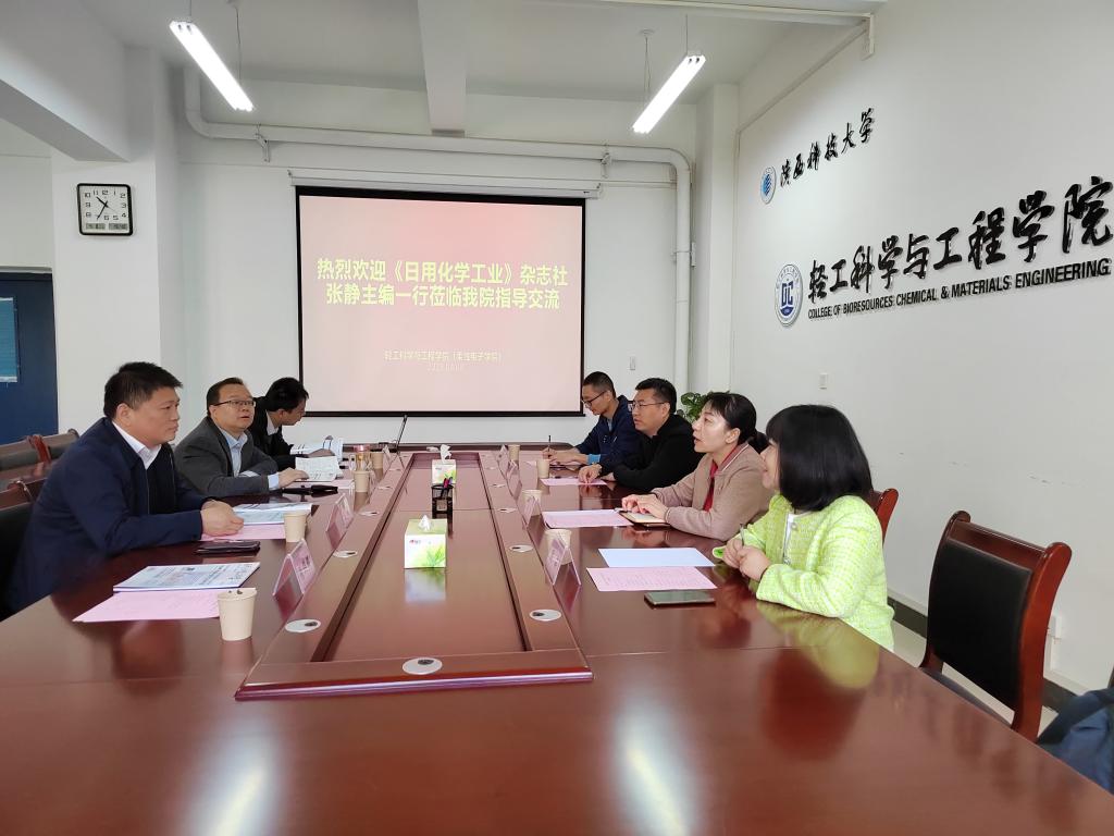 會上,呂斌對張靜一行來訪表示歡迎,并對輕工學(xué)院的學(xué)科建設(shè)、人才培養(yǎng)和科學(xué)研究等情況做了介紹。劉國棟詳細(xì)介紹了輕工學(xué)院教學(xué)、科研、學(xué)科和專業(yè)等基本情況。隨后,張靜介紹了《日用化學(xué)工業(yè)》雜志社的基本情況。
