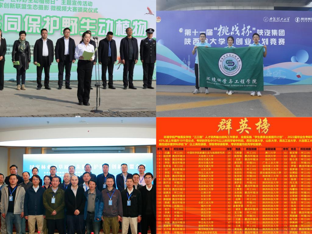 勇做環(huán)境保護(hù)的探索者。依托學(xué)科優(yōu)勢(shì),圍繞環(huán)境保護(hù)開(kāi)展社會(huì)實(shí)踐、科技創(chuàng)新等,先后榮獲科創(chuàng)比賽國(guó)家級(jí)獎(jiǎng)項(xiàng)8項(xiàng)、省級(jí)獎(jiǎng)項(xiàng)20余項(xiàng)、校級(jí)獎(jiǎng)50余項(xiàng),獲批省級(jí)環(huán)境保護(hù)類(lèi)項(xiàng)目6項(xiàng),連續(xù)五年榮獲“秦嶺生態(tài)科學(xué)考察項(xiàng)目”優(yōu)秀項(xiàng)目,入選“朱鹮保護(hù)國(guó)家創(chuàng)新聯(lián)盟”理事單位,“秦嶺衛(wèi)士”專業(yè)環(huán)保志愿服務(wù)品牌效應(yīng)凸顯,《關(guān)于加強(qiáng)秦嶺珍稀瀕危野生動(dòng)物棲息地生態(tài)環(huán)境保護(hù)工作的建議》被全國(guó)政協(xié)采納;教育引導(dǎo)廣大學(xué)生牢固樹(shù)立“科技報(bào)國(guó)”遠(yuǎn)大理想,獻(xiàn)身國(guó)家生態(tài)文明建設(shè),近三年學(xué)院考研率35.1%、45.5%、48.5%,大批優(yōu)秀學(xué)子選擇在環(huán)保相關(guān)專業(yè)繼續(xù)深造,以更高更深的專業(yè)知識(shí)服務(wù)“綠色陜西”、建設(shè)“美麗中國(guó)”。