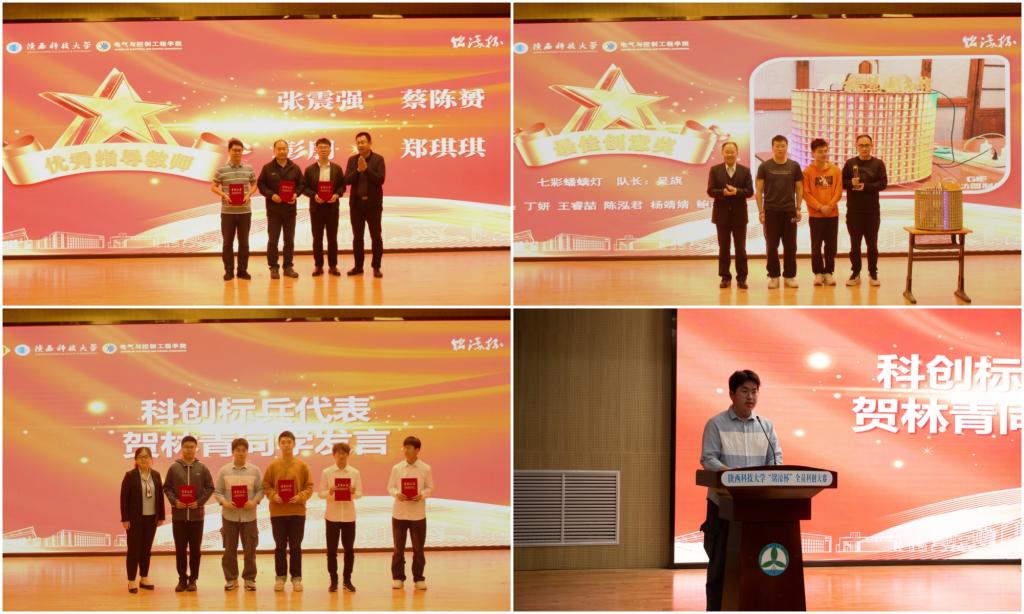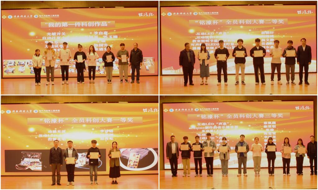 為深入貫徹落實(shí)黨的二十大報(bào)告中關(guān)于教育、科技、人才的重要論述精神,踐行“三全育人”理念,培養(yǎng)學(xué)生科創(chuàng)興趣、提升學(xué)生實(shí)踐動(dòng)手能力,4月26日,陜西科技大學(xué)“銘濠杯”第一屆大學(xué)生全員科創(chuàng)大賽頒獎(jiǎng)典禮暨第二屆全員科創(chuàng)大賽、電控學(xué)院大學(xué)生科創(chuàng)文化月啟動(dòng)儀式在設(shè)藝小劇場(chǎng)舉行。深圳銘濠科技西安研發(fā)中心軟件開發(fā)部經(jīng)理郭喆,陜西科技大學(xué)黨委學(xué)工部部長張凱凱、校團(tuán)委書記李鵬、教務(wù)處副處長邵亮,電氣與控制工程學(xué)院黨委書記喬明哲、院長湯偉及學(xué)院班子成員,全員科創(chuàng)學(xué)術(shù)委員會(huì)主席張玉杰、科創(chuàng)導(dǎo)師、科創(chuàng)助理、“創(chuàng)造社”科創(chuàng)社團(tuán)、新生班主任、各年級(jí)學(xué)生代表參加了本次儀式。