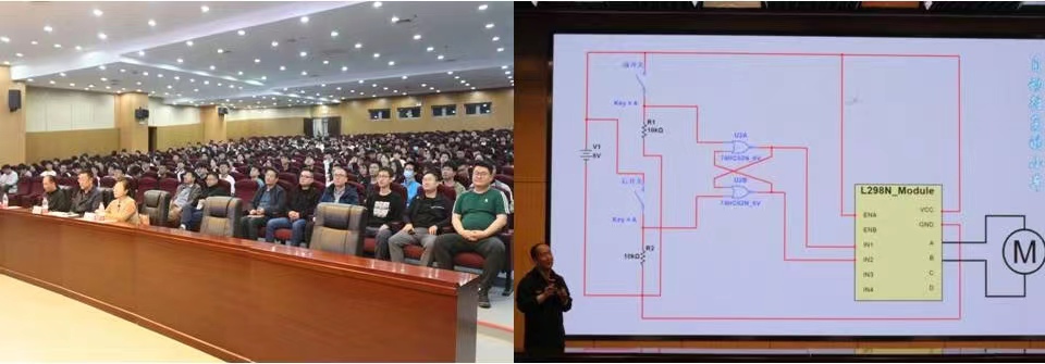 會議伊始,蔡陳赟從參考資源、題目介紹、參賽人員及賽事安排四方面進行細致深入的講解。本屆“我的第一件科創(chuàng)作品”大賽除了延續(xù)上一屆的無線試電筆、自動往復(fù)小車、光敏開關(guān)報警器等傳統(tǒng)題目外,同時創(chuàng)新了電子幸運轉(zhuǎn)盤等題目,旨在進一步增強學(xué)生實踐能力及創(chuàng)新能力。