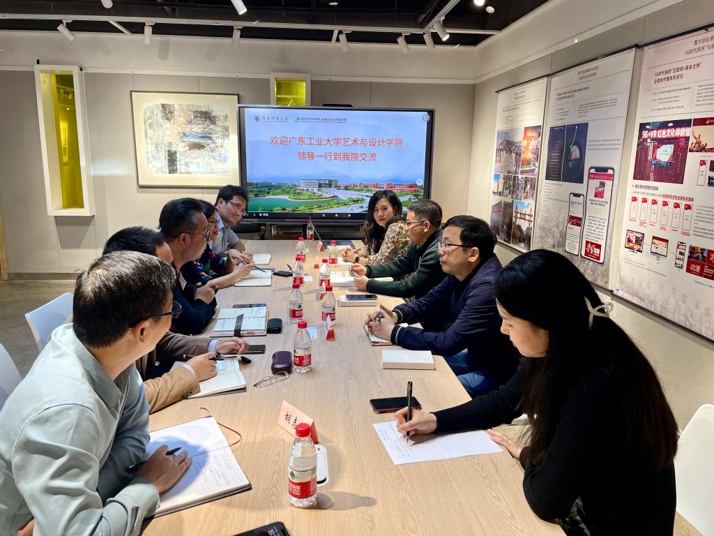 羅勝京對設(shè)藝學(xué)院近年來取得的成果給予高度評價,并介紹了廣東工業(yè)大學(xué)藝術(shù)與設(shè)計學(xué)院的教師團(tuán)隊、專業(yè)構(gòu)成、學(xué)科發(fā)展、科研特色等基本情況,重點介紹了廣東國際先進(jìn)設(shè)計中心的建設(shè)情況,并表達(dá)了希望通過調(diào)研考察促進(jìn)兩校相關(guān)學(xué)科交流合作的意愿。