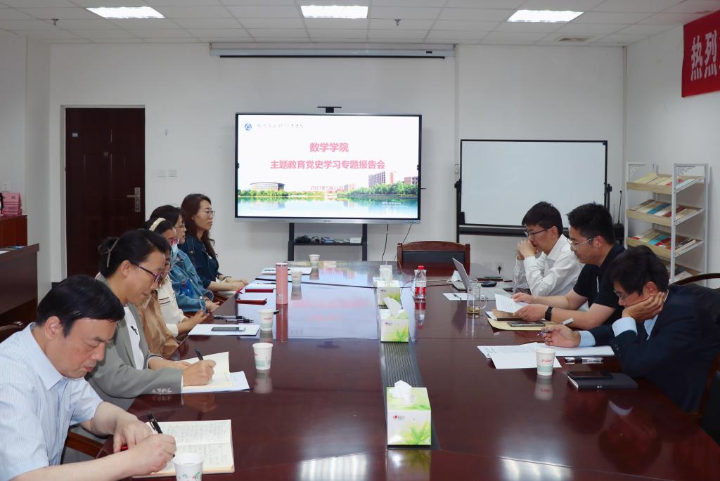 為全面學習宣傳貫徹黨的二十大精神,深化主題教育學習成效,5月23日下午,數(shù)學學院邀請校黨委委員、宣傳部部長李曉作“百年黨史”專題報告,學院全體教工黨員參加。報告由數(shù)學學院院長、黨委副書記李劍主持。