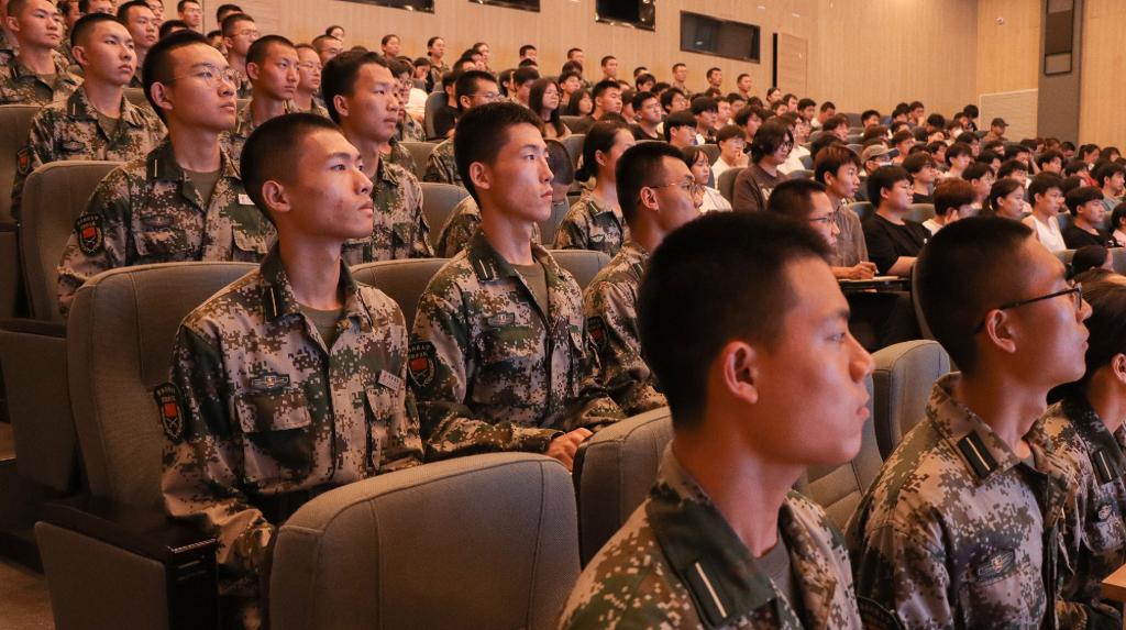 報告會上,盧凱鵬就自己所在英雄單位進行介紹,結合自身經歷,講述從高考填報志愿開始到大學畢業(yè),他和軍隊的不解之緣以及自己的愛國情懷。在軍營生活的磨礪,讓他對部隊感情很深,在報告中,他提到了自己參軍入伍的初心,號召青年學生參軍入伍,為在場的同學們詳細講解了大學生征兵入伍的政策和對個人成長的意義。現(xiàn)場氣氛熱烈,同學們積極互動,就自己感興趣的問題多次提問,盧凱鵬耐心地為同學們一一答疑解惑。