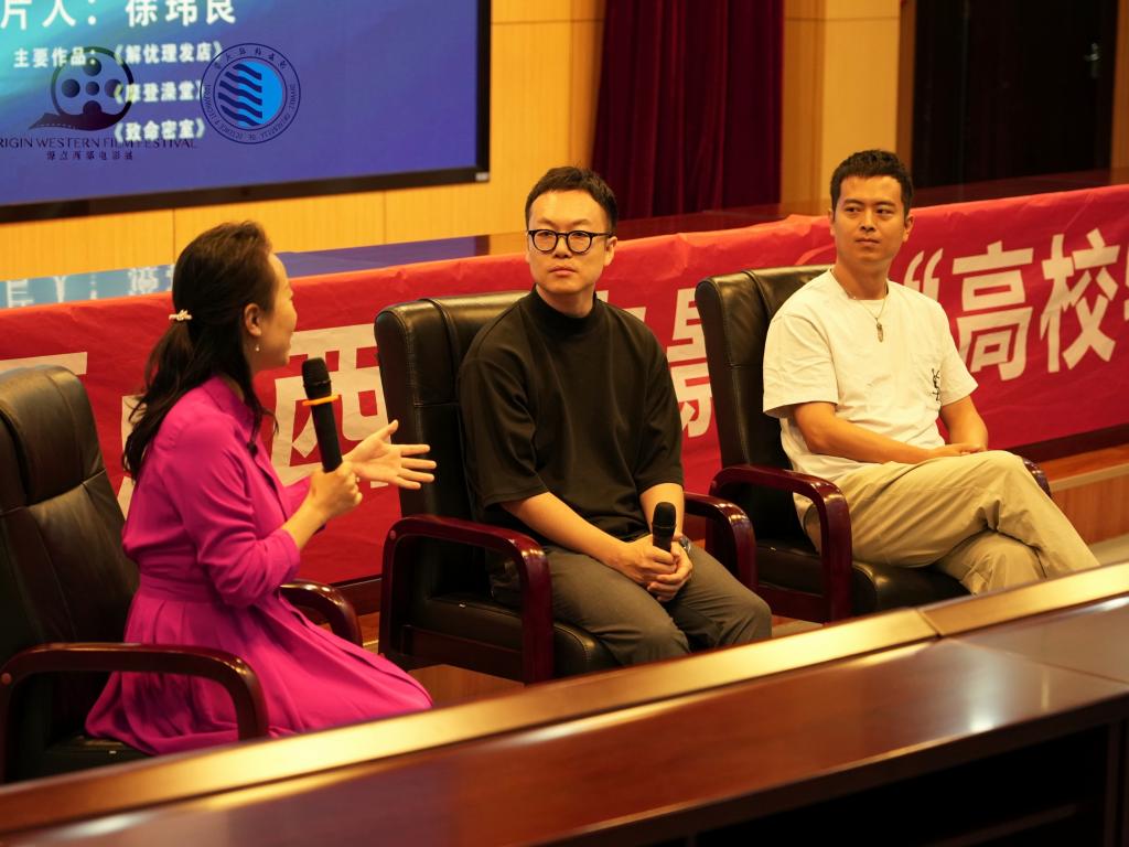 光影點(diǎn)亮人生,文化追本溯源。6月16日上午,第二屆源點(diǎn)西部電影展高校特別活動由我校設(shè)計(jì)與藝術(shù)學(xué)院(絲路文化與傳播學(xué)院)承辦,設(shè)藝學(xué)院副教授林梅、《摩登澡堂》主創(chuàng)團(tuán)隊(duì)導(dǎo)演張奕輒、制片人徐瑋良出席活動。