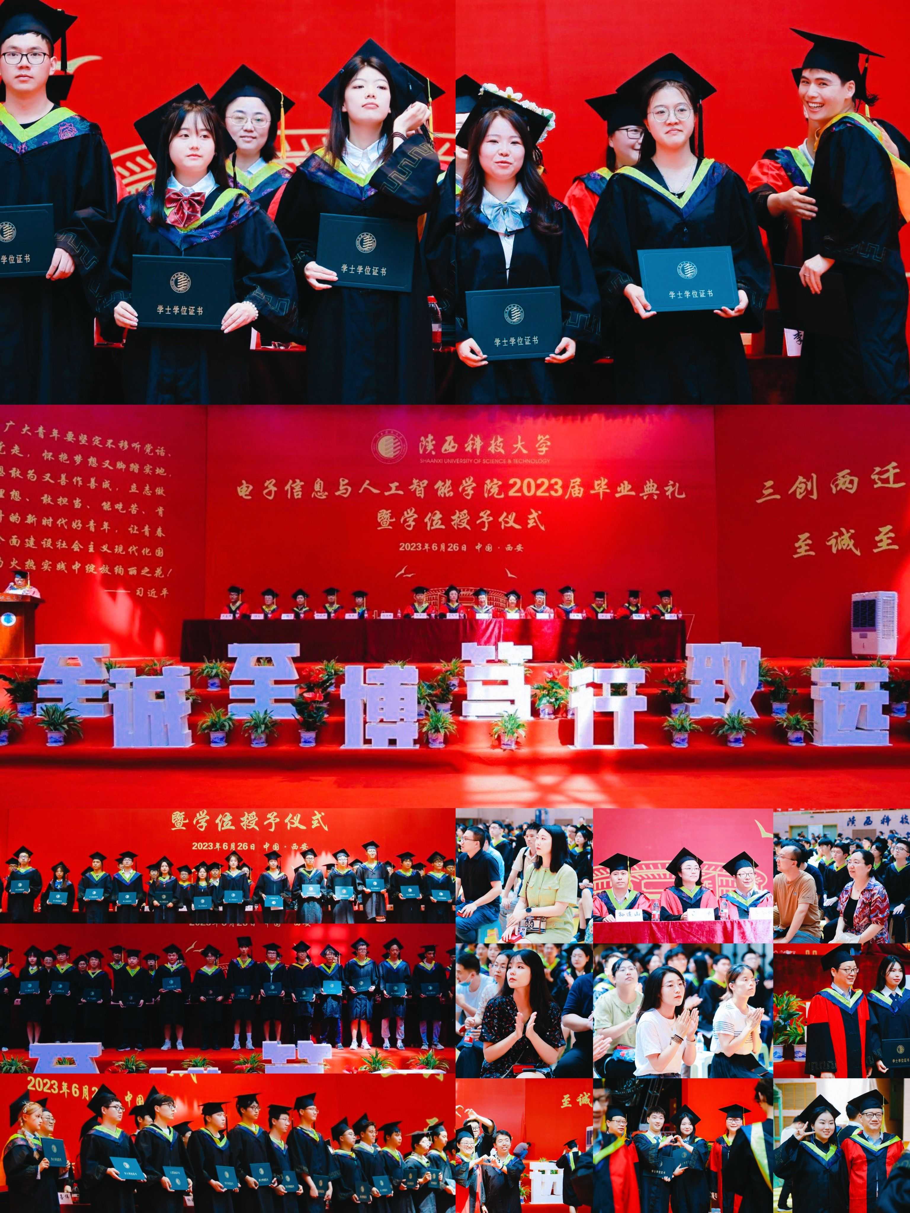 為營(yíng)造溫馨的畢業(yè)氛圍,電智學(xué)院精心策劃了2023屆畢業(yè)典禮暨學(xué)位授予儀式,全院在崗教師悉數(shù)到場(chǎng)送畢業(yè)生最后一程。典禮上光電系主任張方暉老師以真摯、誠(chéng)懇、樸實(shí)語(yǔ)言作為教師代表致辭,表達(dá)了學(xué)院對(duì)畢業(yè)生的祝福與期許。畢業(yè)生代表計(jì)算機(jī)191班杜潔瓊從回憶、感念、致敬、感恩等方面,表達(dá)了畢業(yè)生對(duì)母校的不舍,表達(dá)了對(duì)師長(zhǎng)的感恩。學(xué)院黨政領(lǐng)導(dǎo)、專任教師,逐一為畢業(yè)生扶正流蘇,頒發(fā)學(xué)位證,贈(zèng)送定制的畢業(yè)禮品并親切合影留念。