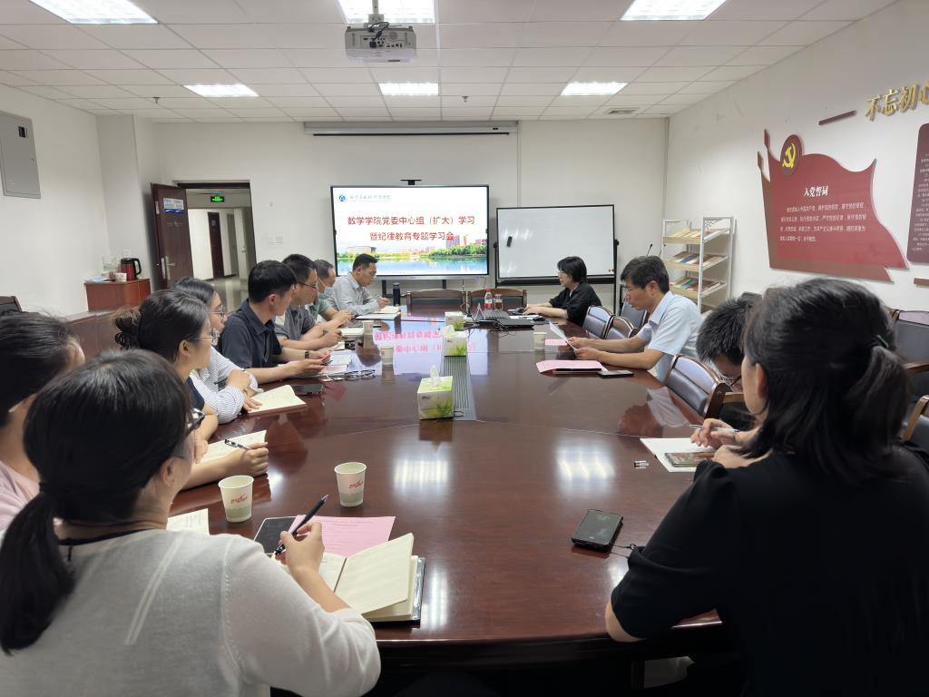 為深入學習黨的二十大精神,7月3日,數(shù)學與數(shù)據科學學院黨委在理科樓423會議室召開理論中心組(擴大)學習暨紀律教育專題會議,特邀馬克思主義學院副院長郗芙蓉講授“從黨章看政黨本色——黨的二十大黨章修改解讀”主題黨課。數(shù)學學院班子成員、黨委委員、紀委委員、各系主任、全體黨支部書記參加會議,會議由學院黨委委員白云霄主持。