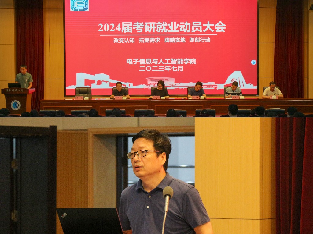 7月6日,電子信息與人工智能學(xué)院在圖書館報(bào)告廳舉辦2024屆就業(yè)考研動(dòng)員大會(huì),學(xué)院黨委書記呂文華、院長(zhǎng)馬令坤、黨委副書記嚴(yán)渭青、院長(zhǎng)助理孫連山出席會(huì)議。
