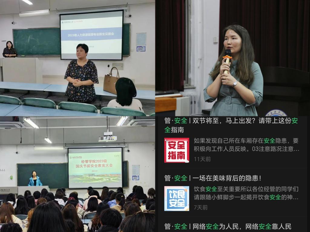 生涯護航,同上一堂“成長課”。學院整合院長助理、專業(yè)教師、輔導員等各方力量,分專業(yè)共開展6次師生見面會暨專業(yè)教育會,為新生介紹學院沿革歷史、學科發(fā)展情況、師資隊伍建設、畢業(yè)生就業(yè)升學情況等,讓新生“零距離”感受專業(yè)魅力,提升對專業(yè)的認可度與歸屬感;通過官方QQ群、“管鮮事”微信公眾號、“經(jīng)管有你”抖音號等開展形式多樣的安全紀律教育共8次,警示新生保護個人信息、謹防上當受騙;以班會、主題團日等形式開展成長規(guī)劃教育,幫助新生解決適應性困難與學習困惑,以此促進新生更加合理地規(guī)劃成長生涯。