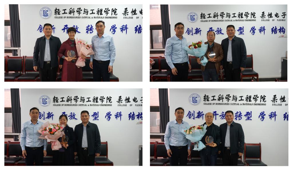 學(xué)院黨委書(shū)記李新平代表學(xué)院對(duì)光榮退休的四位老師表達(dá)感謝和祝福,并充分肯定了他們多年來(lái)為學(xué)校、學(xué)院做出的貢獻(xiàn),向他們表示崇高的敬意,希望退休教師能與學(xué)院保持緊密聯(lián)系,一如既往的關(guān)心、支持學(xué)院事業(yè)的改革與發(fā)展,同時(shí)祝愿他們退休生活更加豐富多彩。輕工學(xué)院院長(zhǎng)呂斌在講話中對(duì)四位老師奉獻(xiàn)學(xué)校、學(xué)院,在學(xué)科專業(yè)建設(shè)、人才培養(yǎng)、科學(xué)研究、服務(wù)社會(huì)、實(shí)驗(yàn)室建設(shè)等方面做出的突出貢獻(xiàn)表示感謝,希望老師們安排好退休后的生活,將自己積累的人生經(jīng)驗(yàn)和教育理念分享傳承下去。