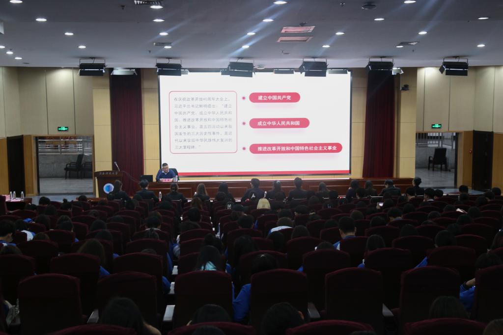 最后,由李鵬老師進(jìn)行團(tuán)學(xué)骨干培訓(xùn)第一講。李鵬圍繞實(shí)現(xiàn)中華民族偉大復(fù)興的主題開(kāi)展培訓(xùn),講解了中國(guó)共產(chǎn)黨的建立及社會(huì)主義現(xiàn)代化發(fā)展之路?;仡欬h的百年奮斗歷程,就像是一場(chǎng)以實(shí)現(xiàn)中華民族偉大復(fù)興為目標(biāo)、堅(jiān)定不移推進(jìn)社會(huì)主義現(xiàn)代化道路的接力賽。從新民主主義革命到民族獨(dú)立、人民解放,再到國(guó)家富強(qiáng)、民族振興,走出了一條人民幸福之路。李鵬以此勉勵(lì)各位團(tuán)學(xué)骨干,希望各位團(tuán)學(xué)組織成員在學(xué)習(xí)工作中化困難為動(dòng)力,總結(jié)經(jīng)驗(yàn),笑對(duì)考驗(yàn),“風(fēng)卷紅旗過(guò)大關(guān)”,努力做將團(tuán)學(xué)組織創(chuàng)新發(fā)展的新時(shí)代青年。