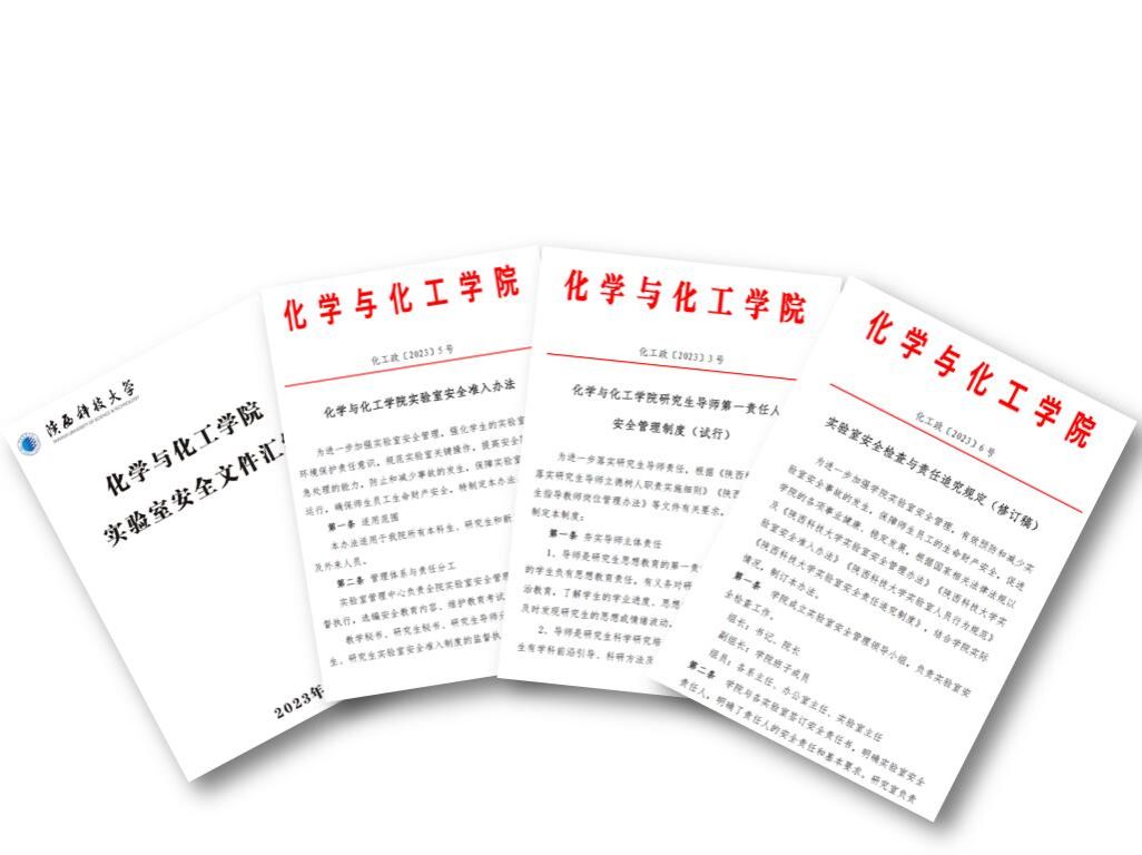 學院壓緊壓實建章立制工作,推動形成嚴防嚴管嚴治的實驗室安全長效機制。制訂研究生導師第一責任人安全管理制度和研究生安全管理制度,明確具體職責細化責任落實,充分發(fā)揮和落實導師第一責任人作用,進一步加強研究生的安全教育和管理。修訂完善實驗室安全準入和安全檢查及責任追究制度,對安全培訓、申請報備、實驗管理、風險防范、責任分工等提出具體措施和要求。學院將實驗室安全管理相關制度匯編成冊,編輯印發(fā)《化學與化工學院實驗室安全文件匯編》,向?qū)W院全體師生開展規(guī)章制度宣傳解讀系列活動,重點對2023年6月出臺的國家標準《高等學校實驗室消防安全管理規(guī)范》進行專題宣講和解讀。為深化源頭治理強化責任考核嚴肅責任追究,學院與全體研究生導師簽訂了《化學與化工學院導師實驗室安全承諾書》,確保實驗室安全管理工作落地落實、見行見效。
