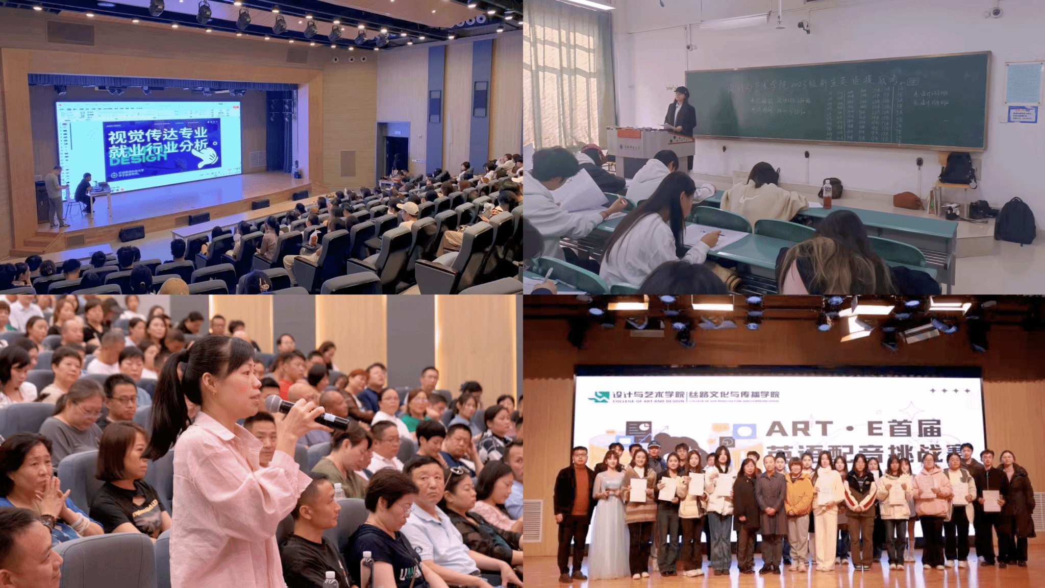 學(xué)業(yè)規(guī)劃“零距離”,用服務(wù)“培優(yōu)”為新生吹響“沖鋒號(hào)”。結(jié)合專業(yè)特點(diǎn),學(xué)院精心組織專業(yè)復(fù)測(cè),先后開展“院長(zhǎng)第一課”“名師第一課”強(qiáng)化新生專業(yè)認(rèn)同,解答學(xué)生個(gè)人發(fā)展規(guī)劃困惑。開學(xué)伊始,學(xué)院高度重視家校聯(lián)動(dòng)協(xié)同育人,召開新生家長(zhǎng)見面會(huì),針對(duì)本科生教學(xué)計(jì)劃、人才培養(yǎng)計(jì)劃、考研與就業(yè)形勢(shì)等內(nèi)容,組織領(lǐng)導(dǎo)干部、專業(yè)課教師、輔導(dǎo)員等向家長(zhǎng)與學(xué)生進(jìn)行宣講。同時(shí),通過(guò)專業(yè)解讀講座、作品集規(guī)劃講座、職業(yè)生涯規(guī)劃講座、獎(jiǎng)助學(xué)金政策解讀、優(yōu)秀學(xué)子事跡推送等,引導(dǎo)學(xué)生盡快明晰學(xué)業(yè)規(guī)劃。其中,圍繞學(xué)校本科生“三三三”人才培養(yǎng)輸出目標(biāo),針對(duì)藝術(shù)生英語(yǔ)單科基礎(chǔ)薄弱問(wèn)題,擬定《設(shè)計(jì)與藝術(shù)學(xué)院英語(yǔ)單科提升計(jì)劃》,開展ART·E 四級(jí)英語(yǔ)模擬考試、講師團(tuán)、單詞打卡以及配音挑戰(zhàn)賽等4場(chǎng)系列活動(dòng)營(yíng)造英語(yǔ)學(xué)習(xí)氛圍,培養(yǎng)學(xué)生優(yōu)良學(xué)風(fēng),引導(dǎo)學(xué)生提早做好職業(yè)發(fā)展規(guī)劃。