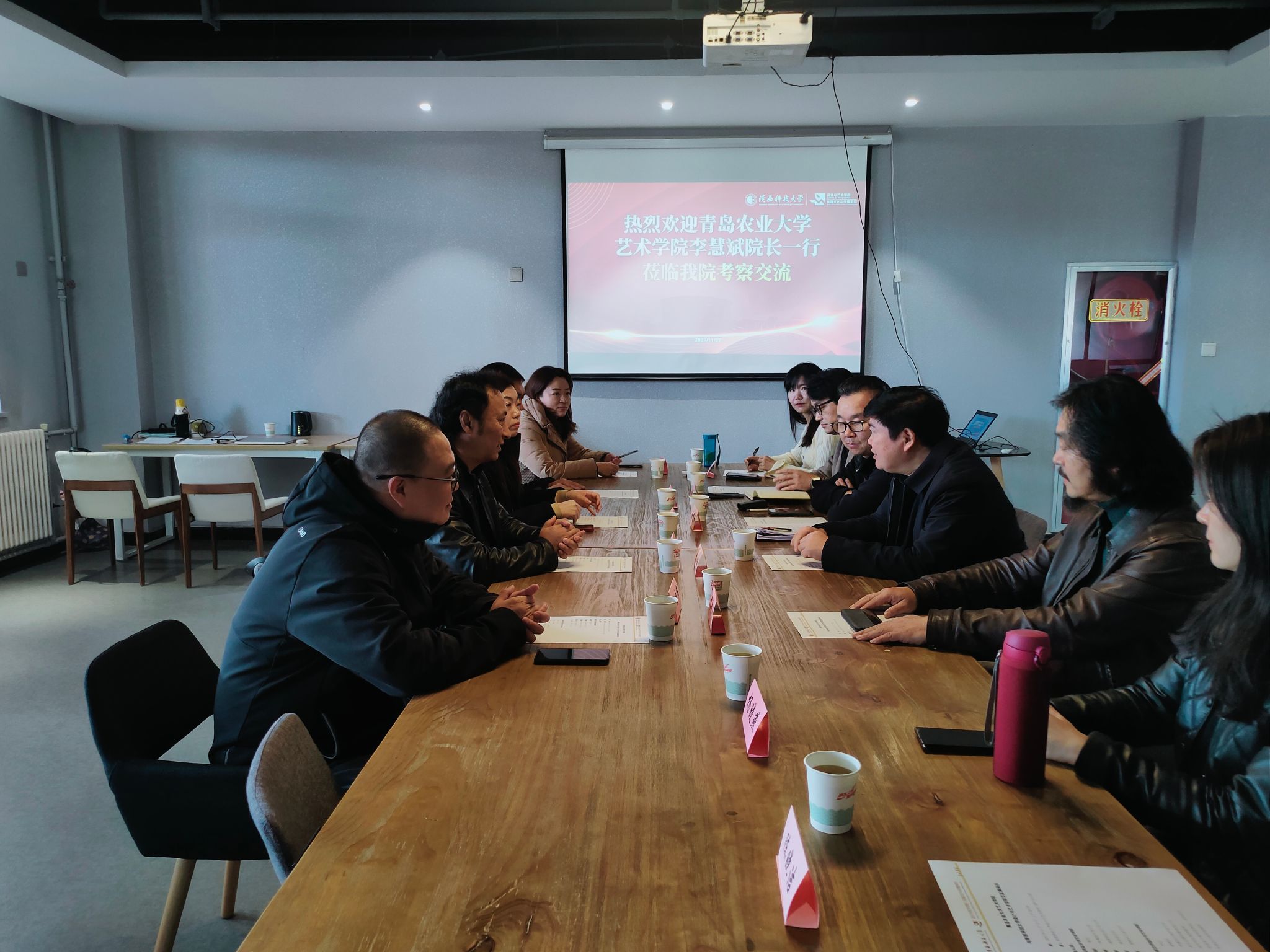 11月27日,青島農(nóng)業(yè)大學(xué)藝術(shù)學(xué)院院長(zhǎng)李慧斌一行5人來(lái)設(shè)計(jì)與藝術(shù)學(xué)院調(diào)研交流。設(shè)藝學(xué)院黨委書(shū)記劉和林、學(xué)科帶頭人詹秦川、副院長(zhǎng)米高峰、相關(guān)教研室主任等參加了交流活動(dòng),米高峰主持會(huì)議。