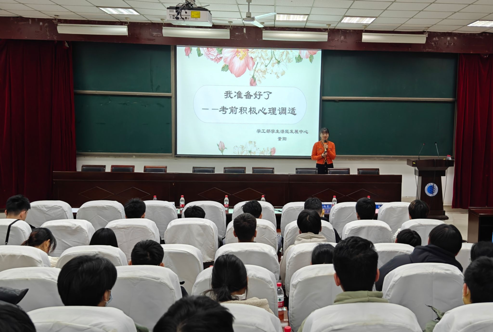 會后,董陽為2024屆考研學(xué)生開展“我準(zhǔn)備好了”考前積極心理調(diào)適輔導(dǎo)。首先通過“烏龜與烏鴉”的熱場游戲,活躍了現(xiàn)場氣氛。隨后,分別介紹了積極暗示、想象脫敏、正念冥想、自我暗示等方法,帶領(lǐng)同學(xué)們沉浸式體驗(yàn),幫助2024屆考研學(xué)生戰(zhàn)勝考前焦慮,以更好的狀態(tài)迎接考試。