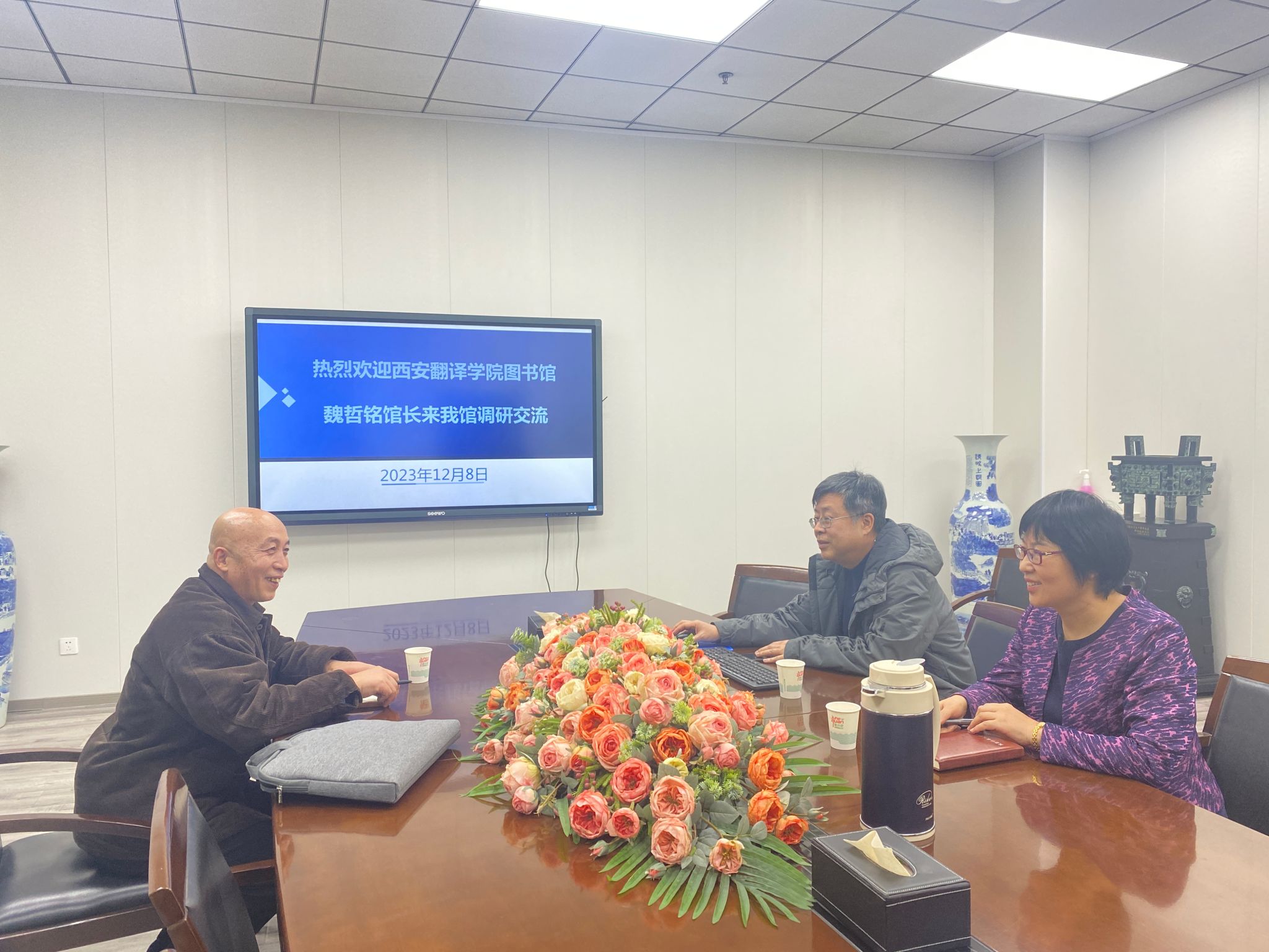 12月8日上午,西安翻譯學(xué)院圖書館館長魏哲銘一行來我校圖書館就智能盤點、資源建設(shè)、人才建設(shè)等工作進(jìn)行調(diào)研交流,圖書館館長王海剛、副館長鄭勇參加了座談。