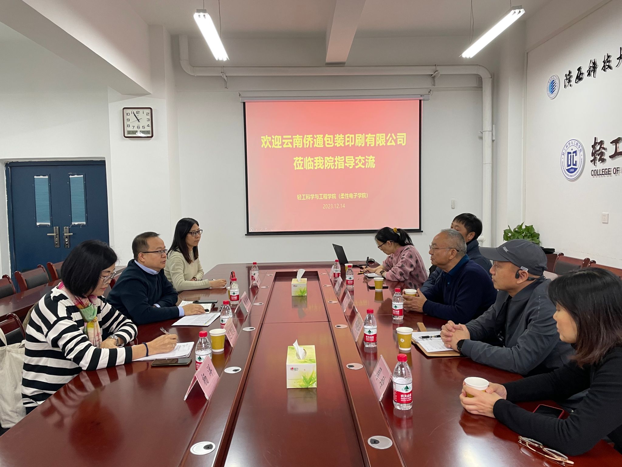 12月14日上午,云南僑通包裝印刷有限公司副總經(jīng)理、技術(shù)中心主任文杰,副主任鄭曉波,研發(fā)部部長(zhǎng)桑波,辦公室主任周玲,研發(fā)部研究員夏瑋瑋等一行到輕工科學(xué)與工程學(xué)院(柔性電子學(xué)院)進(jìn)行交流。輕工學(xué)院副院長(zhǎng)劉國(guó)棟、印刷工程系主任遲聰聰、印刷系教師代表參加座談。會(huì)議由劉國(guó)棟主持。