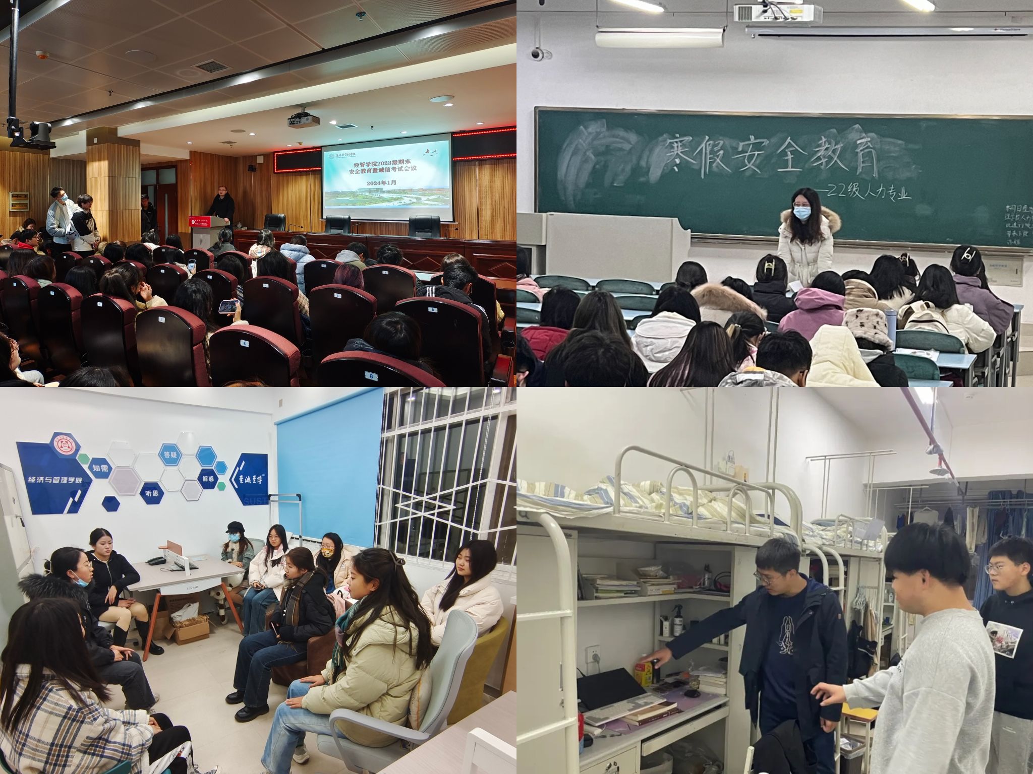聚焦服務育人,在摸排安全隱患上下功夫。一是開展宿舍安全隱患摸排工作,加強宿舍消防安全,通過走訪宿舍、談心談話等形式,提醒同學們注意宿舍用電安全,嚴禁在宿舍內(nèi)使用大功率電器,嚴禁明火,自覺遵守學校宿舍安全管理規(guī)定。二是通過晚點名、主題班會、年級大會等形式,強調(diào)寒假假期安全、防范電信網(wǎng)絡詐騙、出行交通安全、人身財產(chǎn)安全、食品安全等,通過定期對學生宿舍進行衛(wèi)生安全秩序檢查,督促學生養(yǎng)成良好生活習慣,有效化解各類學生矛盾糾紛,全力保障學生的身體健康和校園的正常教學秩序。三是密切聯(lián)系家長,促進家校共育,形成育人合力,學院通過定期與重點學生群體談心談話、回訪家長等方式,以常聯(lián)系、勤追蹤、多回訪的家校溝通鏈條,持續(xù)加強對各類心理問題學生的關心關愛。