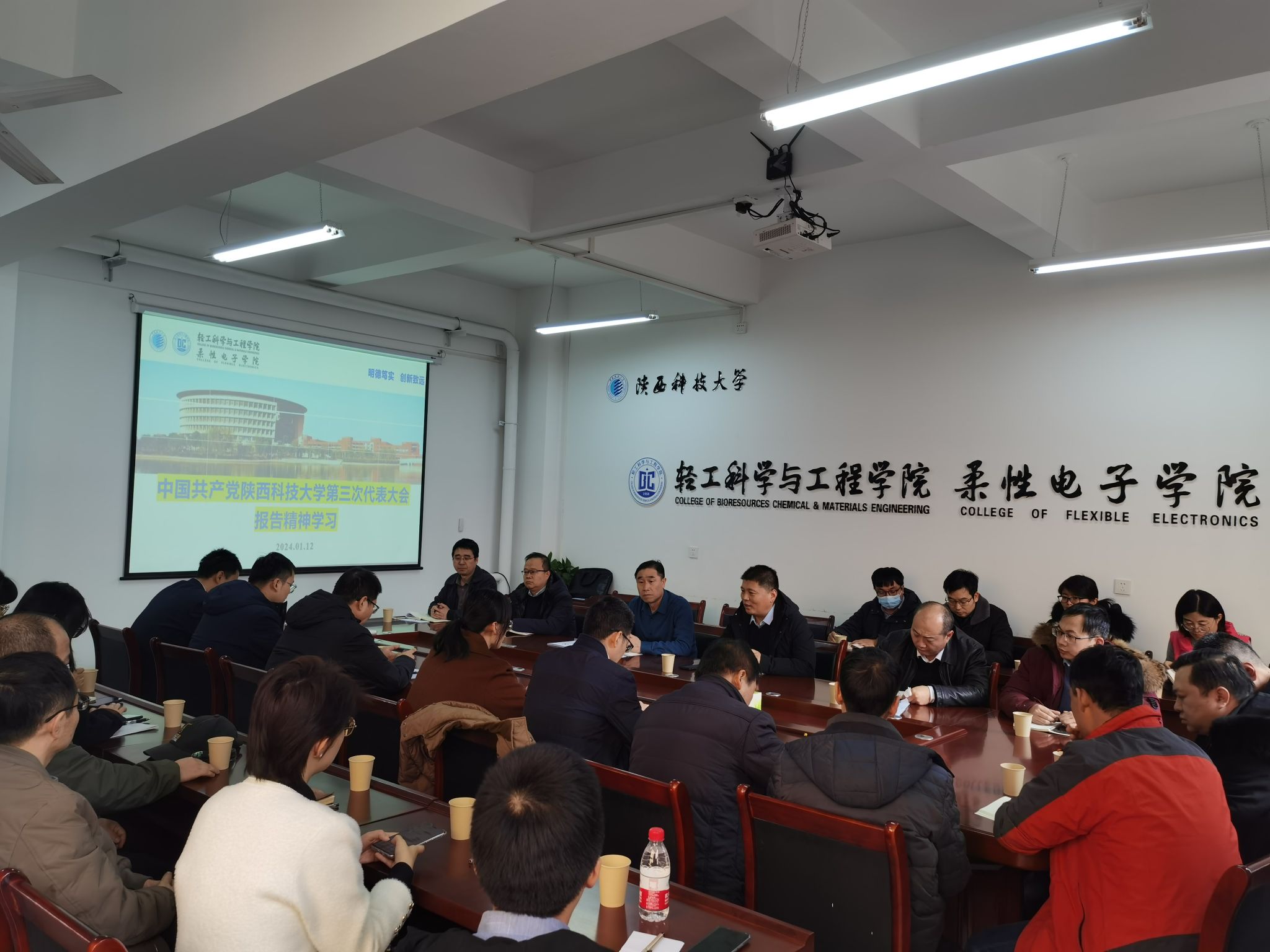 1月12日,輕工科學(xué)與工程學(xué)院(柔性電子學(xué)院)召開專題會(huì)議,傳達(dá)學(xué)習(xí)學(xué)校第三次黨代會(huì)精神。輕工學(xué)院班子成員、黨委委員、紀(jì)委委員、全體黨支部書記、各系室負(fù)責(zé)人參加會(huì)議。會(huì)議由學(xué)院黨委副書記、院長呂斌主持。