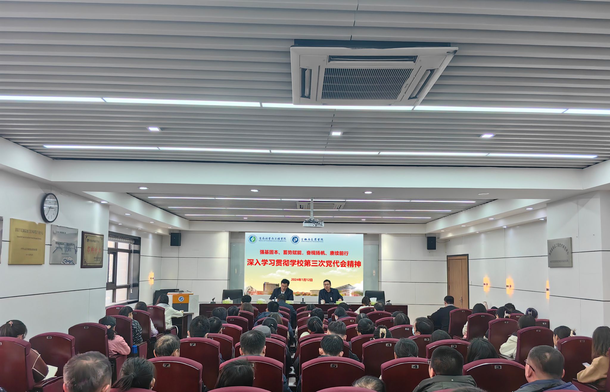 為深入學(xué)習(xí)宣傳貫徹學(xué)校第三次黨代會(huì)精神,食品科學(xué)與工程學(xué)院(生物與醫(yī)藥學(xué)院)黨委于1月12日下午召開全院教職工大會(huì),傳達(dá)學(xué)習(xí)學(xué)校第三次黨代會(huì)精神。會(huì)議由學(xué)院黨委書記訾榮祿主持。