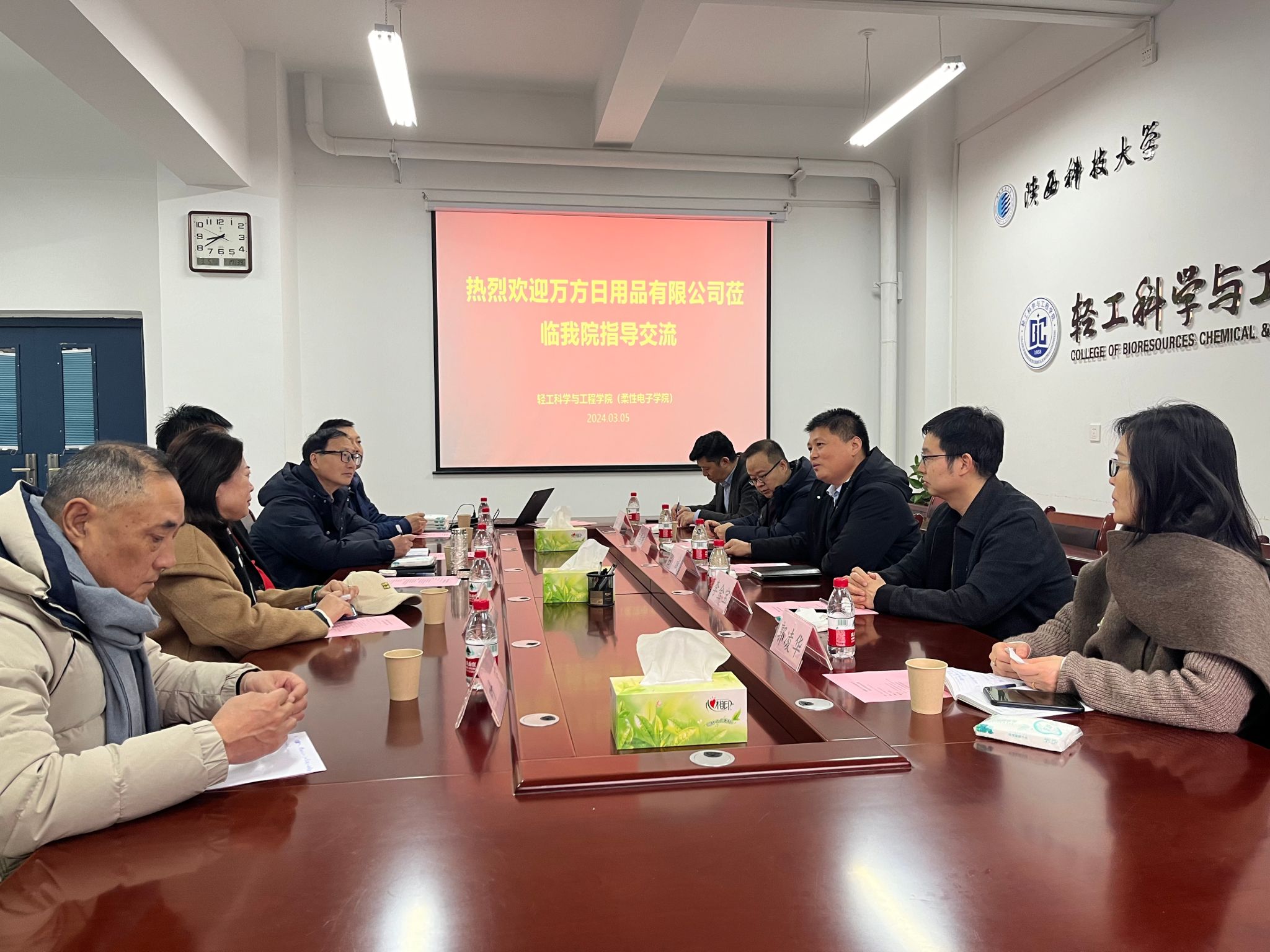 輕工學(xué)院院長(zhǎng)呂斌對(duì)旌德縣萬方日用品有限公司一行的到訪表示熱烈歡迎,并介紹了陜西科技大學(xué)與輕工學(xué)院的發(fā)展歷程,以及近年來學(xué)院在學(xué)科建設(shè)、人才培養(yǎng)、科學(xué)研究等方面取得的成果。輕工學(xué)院李金寶教授重點(diǎn)介紹了在紙紗、烘焙紙、微晶纖維素等方面的研究和產(chǎn)業(yè)化應(yīng)用等工作,校企雙方進(jìn)行了充分的交流和討論。